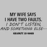 Acme Grumpy Is Good - designed & printed in Australia. Our wives are our greatest fans, and our greatest critics, and we should listen for the things we can do to improve ourselves! Printed on a quality uni-sex Ultra Cotton t-shirt from Gildan, shirt is 100% pre-shrunk cotton.