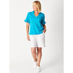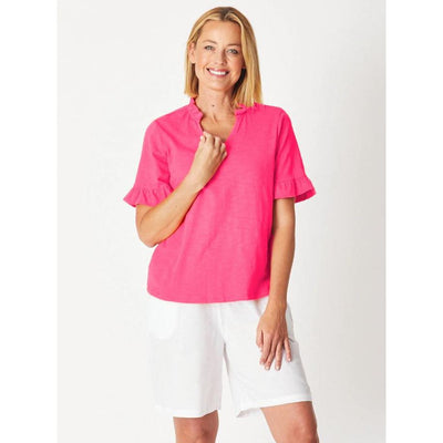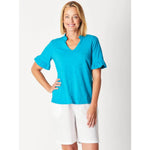 Lightweight, feminine and vibrant - this RUFFLE TEE TOP is perfect for adding a touch of pizzazz to your style! Beautifully defined with ruffled trims along the neckline and sleeves, the open V-neck and square shape will have you feeling effortlessly chic.