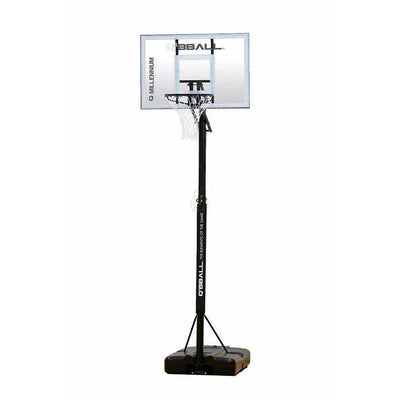 The Millennium hoop is simple to assemble at home with minimal tools required. Due to the size and solid nature, we recommend the system be built by two people. Once built, fill the base with water or sand, sand is recommended to prevent freezing in colder conditions. The wheel on the front of the base makes the system easy to move around, simply tilt the system back to 45 degrees and roll it to a suitable location. Should you wish to secure the system in one spot, ground anchors are included, however, this is not required for the system to be stable.