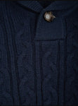 This new in ‘Parallax’ wool blend shawl neck cable knit jumper in sky captain navy by Tokyo Laundry is a must-have style to layer up in. A cold weather essential; this men’s jumper features the cable knitted design all over for truly exceptional comfort and warm. The shawl neckline with wooden button fasten makes for the perfect pullover and features cuffed sleeves and hem to finish. This knit is easily paired with chinos or jeans – for home or for leaving the house!